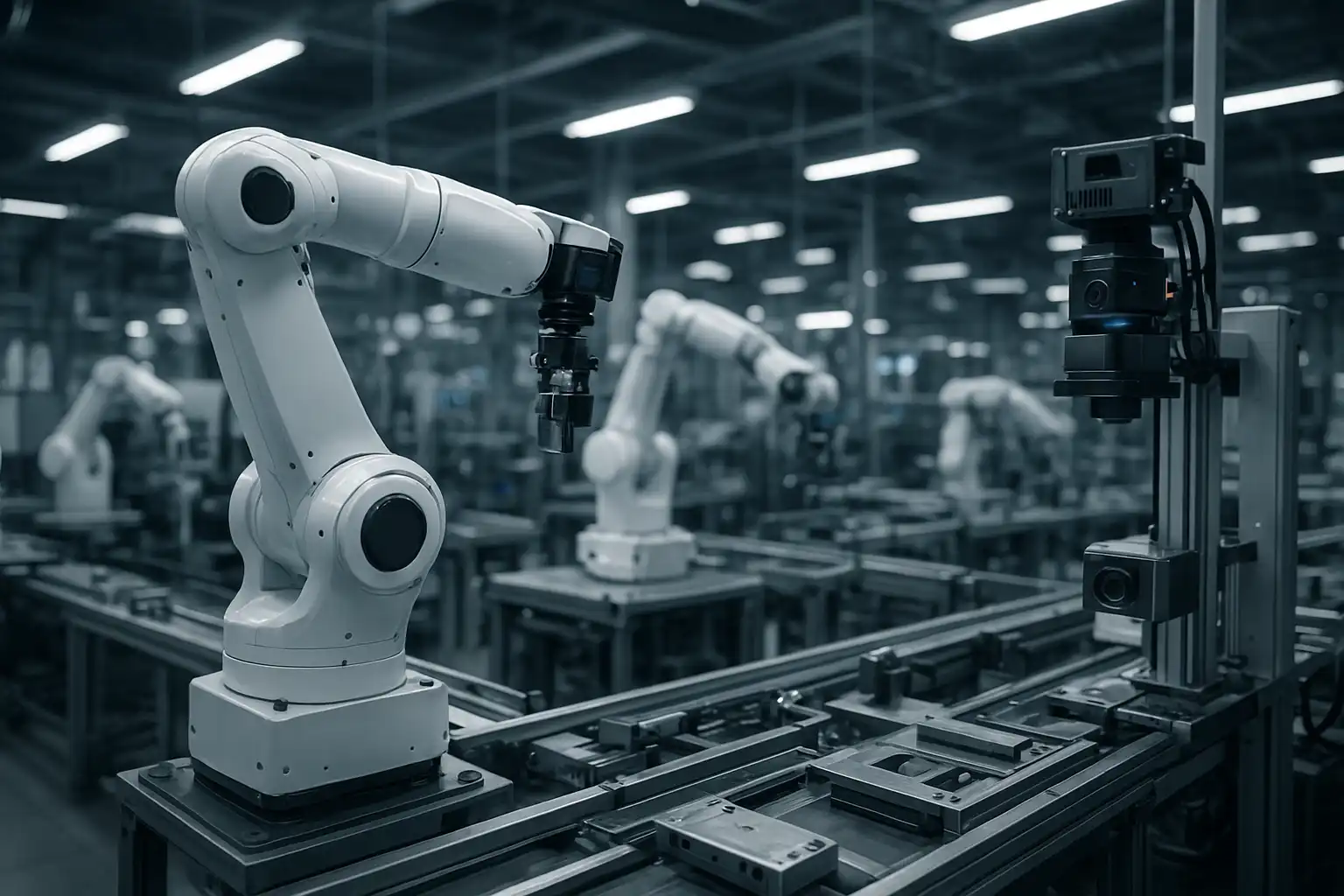 ابزارهای بهبود عملکرد ربات شامل سنسورها، سیستمهای بینایی ماشین، نرمافزارهای تحلیل داده، بازوهای رباتیک دقیق …