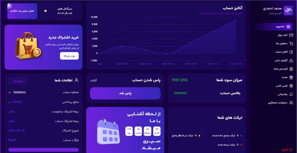 بعد از پرداخت با ارز مورد نظر بصورت خودکار به داشبورد کاربری وصل میشوید