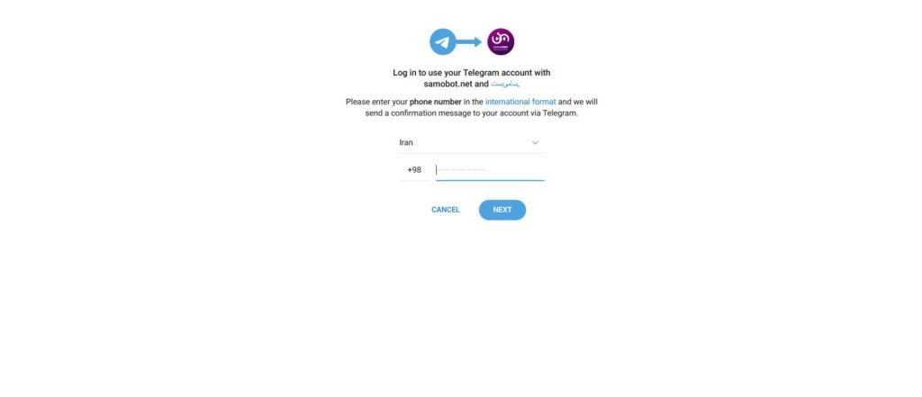 در صفحه جدید شماره تلفن تلگرام خود را بهمراه پیش شماره کشور وارد نمایید
