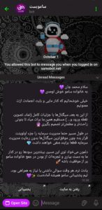 مجدد وارد صفحه قبل شوید و تایید را انجام دهید ” ACCEPT” تا دسترسی ها و تاییدیه ها برای سایت ساموبات و تلگرام انجام شود