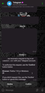 برای شما در تلگرام پیام ارسال میشود که باید روی confirm کلیک کنید و این عملیات را تایید کنید